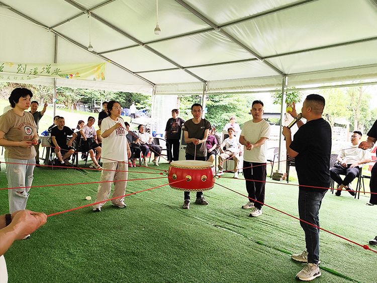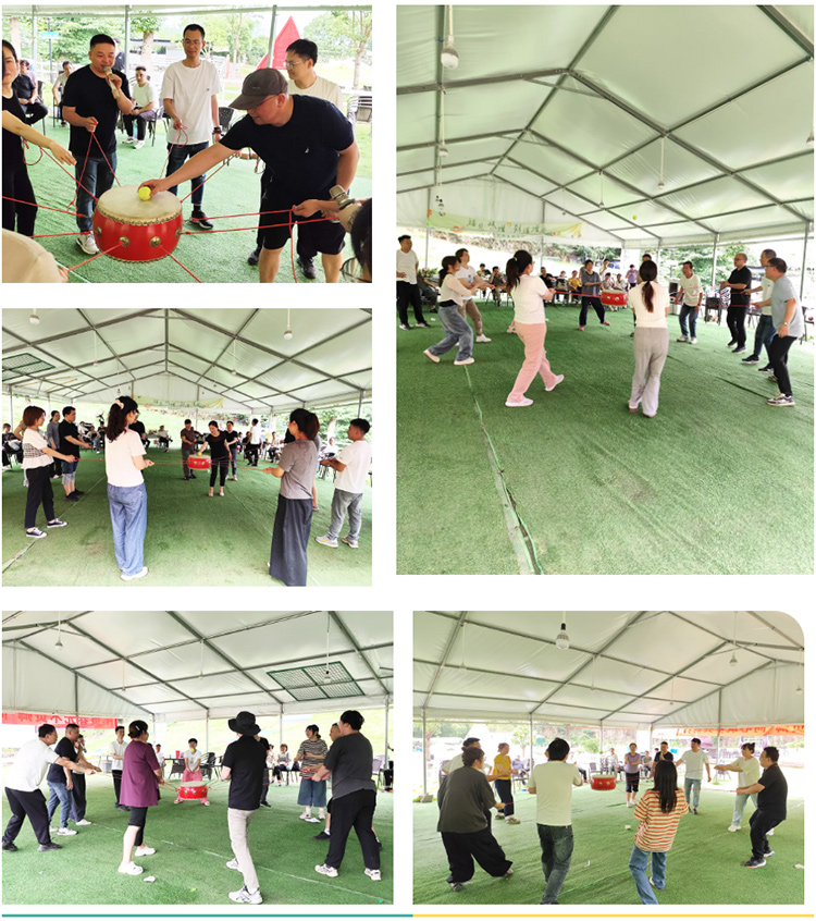 在夾紙頂杯競走的激情過后,我們迎來了另一項(xiàng)兼具挑戰(zhàn)與趣味的活動——同心鼓擊鼓顛球!每一次成功的顛球,都是團(tuán)隊(duì)協(xié)作的完美詮釋,大家在挑戰(zhàn)中磨合,在歡笑中凝聚,每個人的臉上都洋溢著喜悅和成就感!