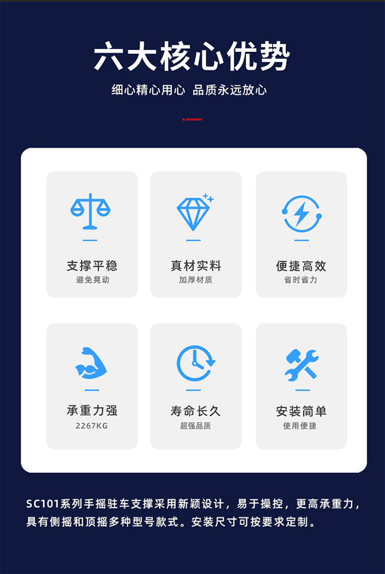 為了滿足市場(chǎng)對(duì)高品質(zhì)千斤頂?shù)男枨?,斯科近期重磅推出SC101系列手搖拖車千斤頂。該系列產(chǎn)品專為重型拖車與房車的安全穩(wěn)固支撐而精心設(shè)計(jì),是助力旅途無(wú)憂的得力裝備。