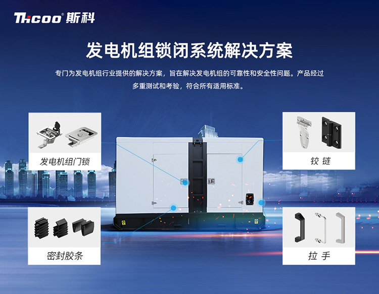 斯科長期專注于工業(yè)五金的制造與研發(fā),傾力打造發(fā)電機組鎖閉系統(tǒng)解決方案,致力于為客戶提供最優(yōu)質的配件產(chǎn)品和服務,贏得了市場的廣泛認可。