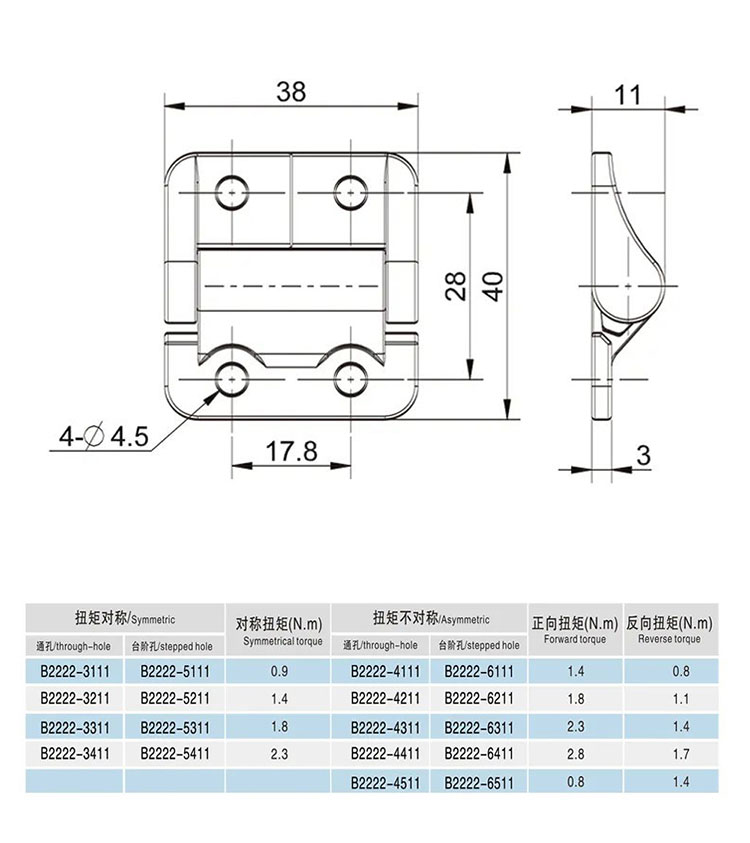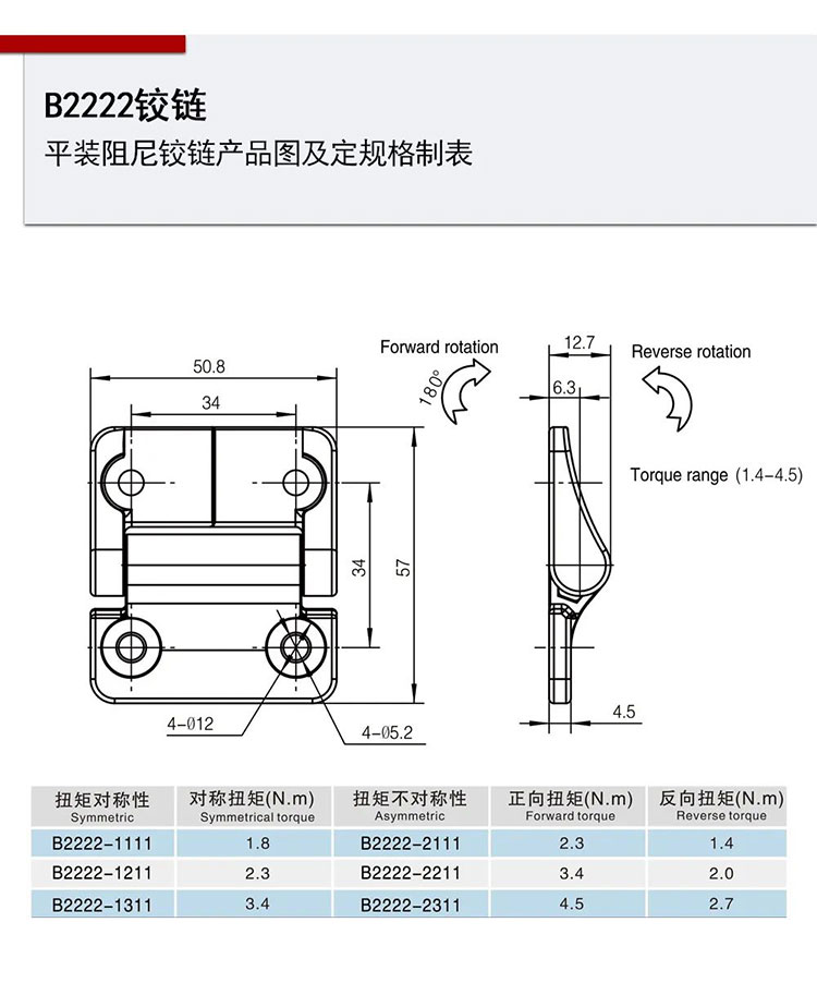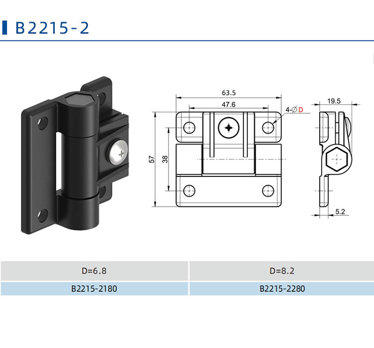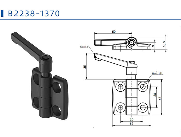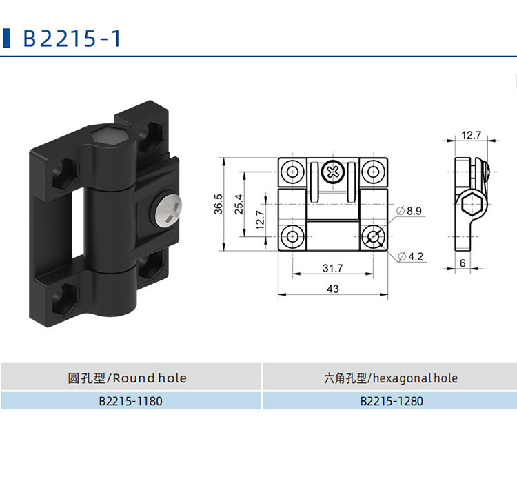 B2215可調(diào)阻尼鉸鏈采用POM具有良好的綜合性能,包括力學(xué)性能、耐熱性、耐磨損性、耐化學(xué)藥品性,且摩擦系數(shù)低,有一定的阻燃性。附帶阻尼緩沖功能,降低關(guān)閉時(shí)的沖擊力,通過擴(kuò)大阻尼器開啟角度,實(shí)現(xiàn)平滑的運(yùn)動(dòng)。適用場景餐車、安全欄、配電板、柜子、鋁型材框架、工業(yè)設(shè)備等。