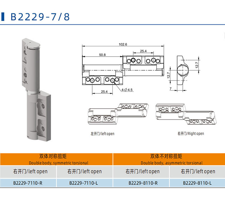 B2229阻尼鉸鏈鋅合金材質(zhì)厚實(shí)穩(wěn)固,經(jīng)典結(jié)構(gòu)內(nèi)外兼修。輕柔平穩(wěn)順暢的開合表現(xiàn)提高了使用的安全性和靜音效果,幫助用戶精確地將設(shè)備定位到所需的位置。安裝過程中,其便捷性讓企業(yè)制造商能夠顯著提升安裝效率。