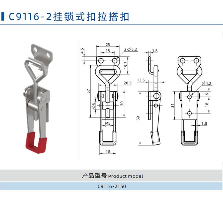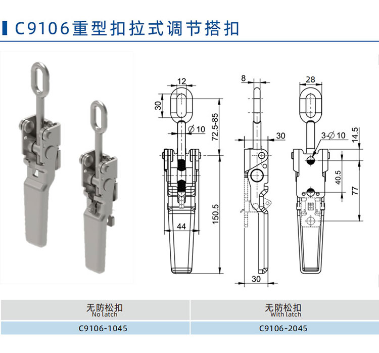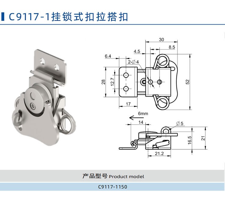 整體外觀簡(jiǎn)潔大方、自帶鎖定功能,抗振動(dòng)性能優(yōu)秀,在鎖緊之后能夠防止意外解扣等情況的發(fā)生。搭扣在強(qiáng)烈振動(dòng)下不出現(xiàn)噪音等問(wèn)題。用途:箱體蓋鎖閉、測(cè)量?jī)x器、機(jī)床、農(nóng)業(yè)機(jī)器、船舶等。