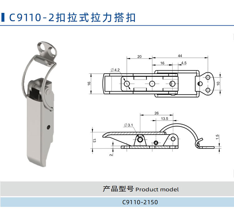 搭扣主要是搭接在固定件和移動(dòng)件上用來(lái)扣緊的工業(yè)物件,已經(jīng)被廣泛應(yīng)用于工業(yè)中的方方面面。例如:工業(yè)設(shè)備的平臺(tái)的穩(wěn)固、設(shè)備箱蓋的鎖緊穩(wěn)固、機(jī)械設(shè)備的門(mén)用等。