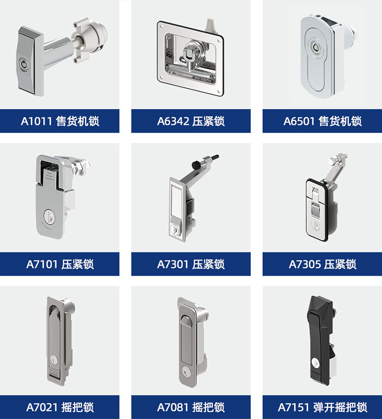 轉(zhuǎn)舌鎖有各種類型、鑰匙轉(zhuǎn)動(dòng)角度和抓取范圍可供選擇。