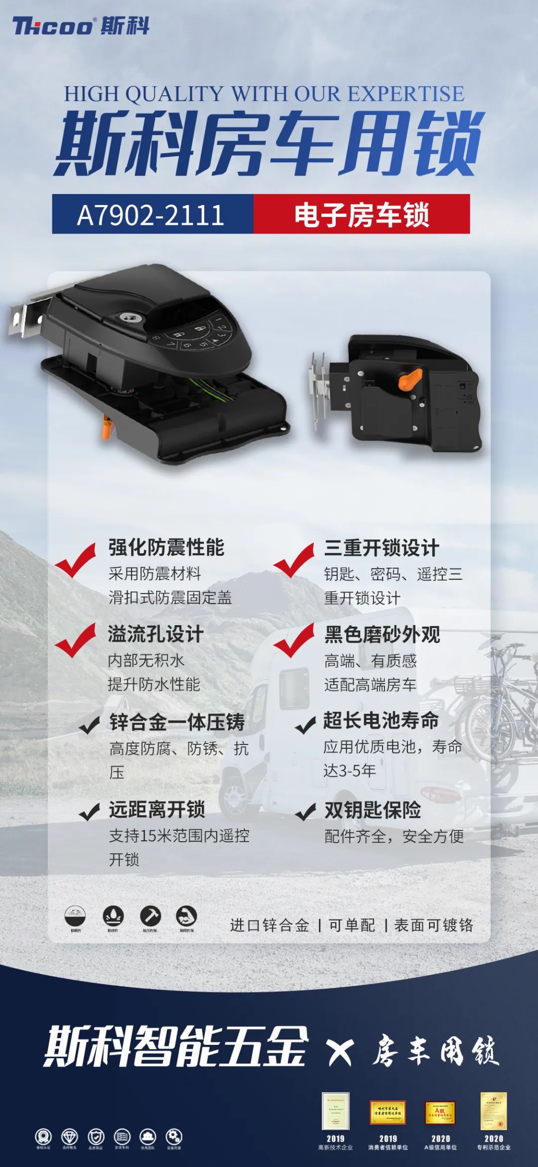 斯科A7902-2111密碼鎖、A7892電子鎖、A7892-3141平面鎖及A7902平面鎖,是目前斯科針對(duì)戶外中大車型安裝、改裝應(yīng)用的主打鎖型,適用于各種家用房車、越野車、特種車、重型車、卡車等。幾款產(chǎn)品現(xiàn)已全面上市并穩(wěn)定投入使用。