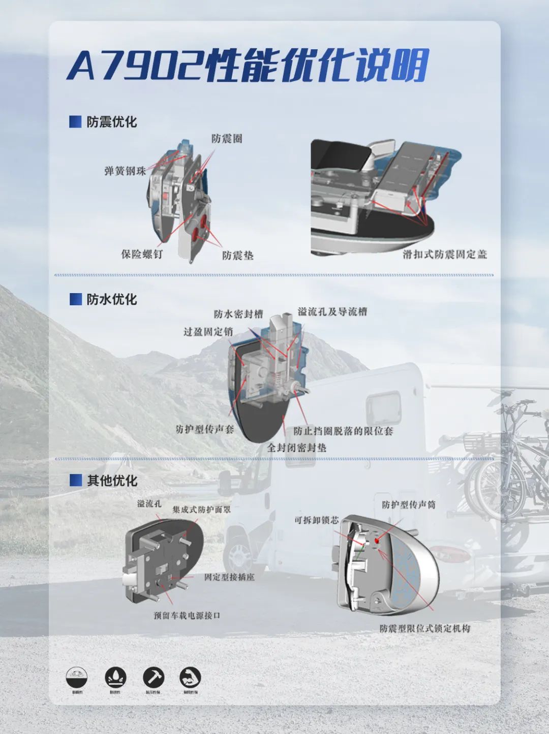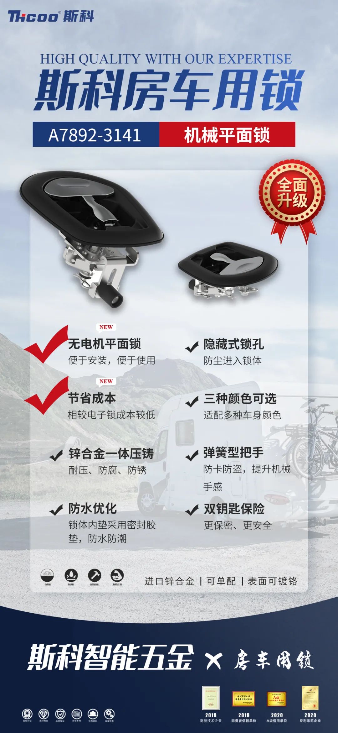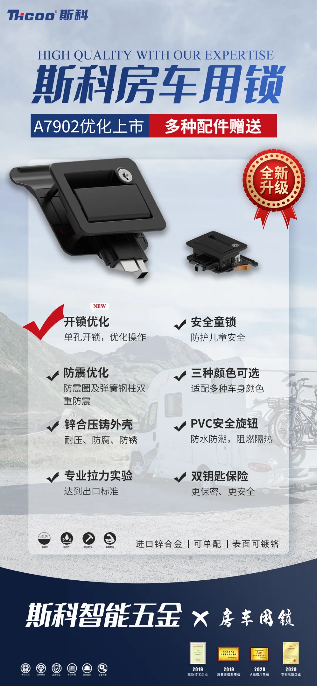 A7902平面鎖,可應(yīng)用于普通房車、越野車、改裝車等多種戶外車型。對(duì)開鎖方式進(jìn)行優(yōu)化后全新上市: